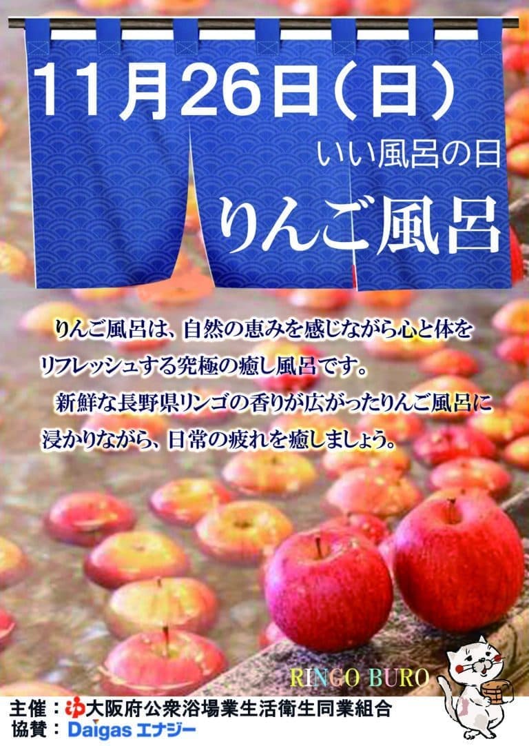 11月26日(日)いい風呂の日に、「りんご風呂」を開催します。